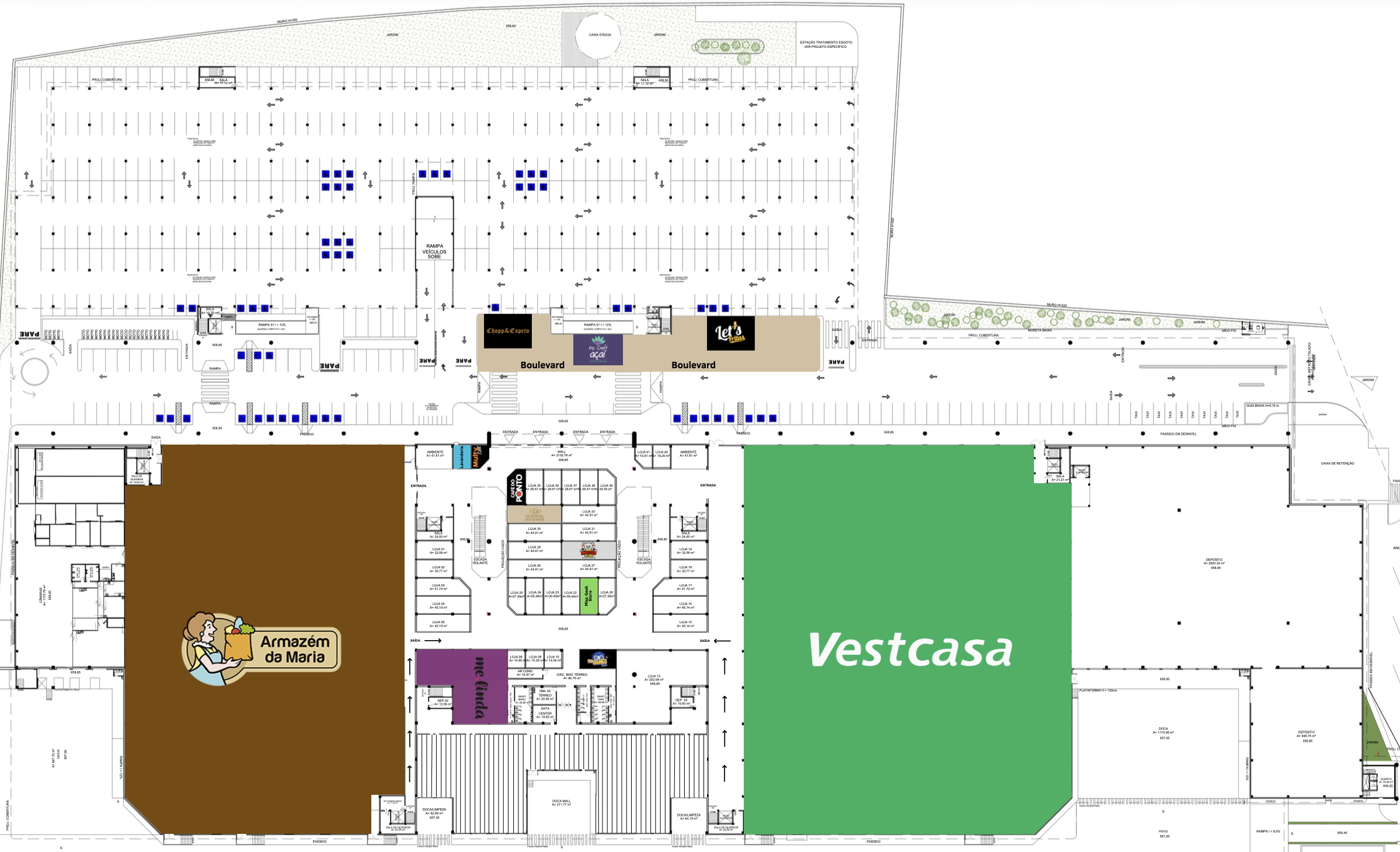 Armazém da Maria impulsionando o fluxo diário do mall, Vestcasa atraindo consumidores de toda a região, Melinda Cosméticos gerando recorrência e frequência de público, Base sólida de clientes já estabelecida, Espaços disponíveis para operações que queiram capturar esse fluxo
